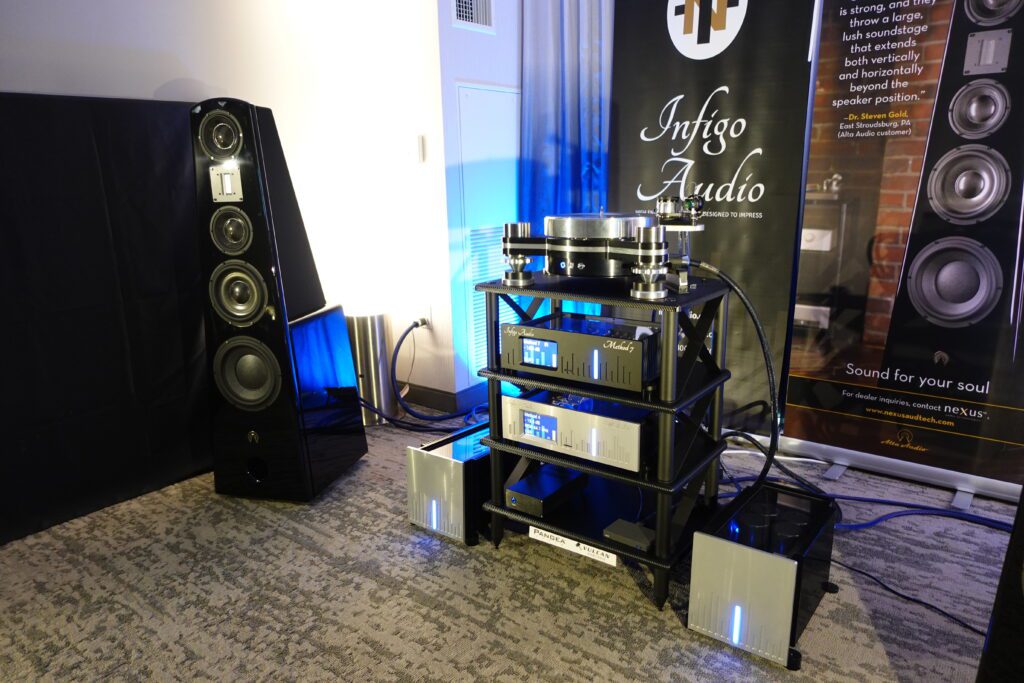 This was a new one to me, and I found their system entirely captivating. So captivating, in fact, that I completely forgot to take note of prices! However, the Infigo Audio Method 4 DAC, Method 7 preamp, and Method 3 Class A mono amps sounded sensational when played through the powerful room shaking $50,000/pair new Aphrodite loudspeakers from Alta Audio. These electronics could make me a Methodist!