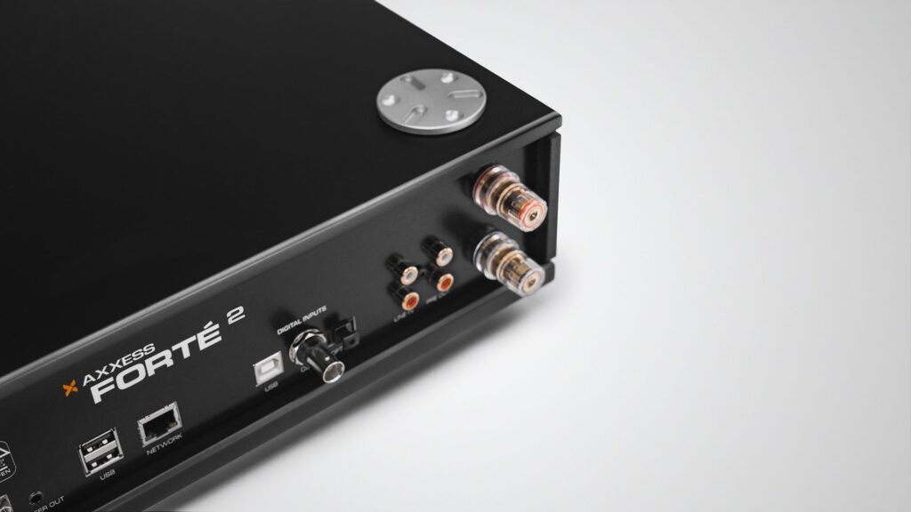 This unique hardware is applied to the same basic amplifier, which makes use of Pascal Class D modules to deliver 100 watts into eight ohms. This receives power from a ‘resonant mode power supply’ inspired by sister brand Aavik that combines low noise floor with the means to supply high levels of instantaneous power when required. No figure is quoted into four ohms but none of the Fortés have struggled with the pair of Bowers & Wilkins 702 S3 Signatures that have been on hand for testing.